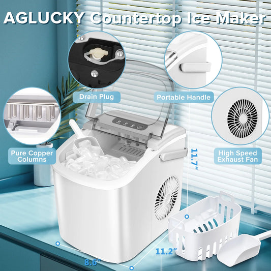 Auseo Countertop Ice Maker, Portable Ice Machine with Handle, 26Lbs/24H, 9 Cubes Ready in 6 Mins,...