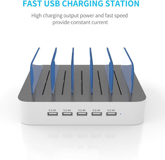 Charging Station for Multiple Devices, 5 Port Multi USB-A Charger Station with Power Switch Desi...
