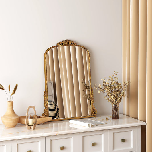 Traditional Baroque Arch Wall Mirror Antique Gold Mirror Wall Decor for Living Room Home 31.5&quo...